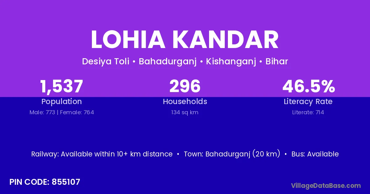 Lohia Kandar village has a total population of 1,537 people, of which 773 are males and 764 are females.