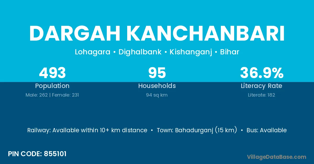 Bahadurganj (15 km) is the nearest town to Dargah Kanchanbari village for major economic activities and is located approximately 15 km away.