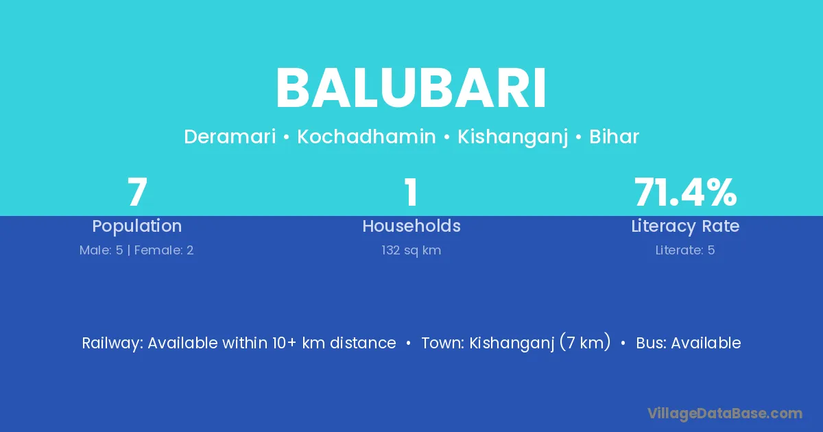 Kishanganj (7 km) is the nearest town to Balubari village for major economic activities and is located approximately 7 km away.