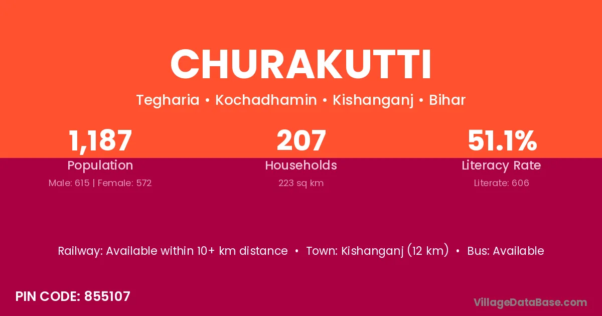 Kishanganj (12 km) is the nearest town to Churakutti village for major economic activities and is located approximately 12 km away.