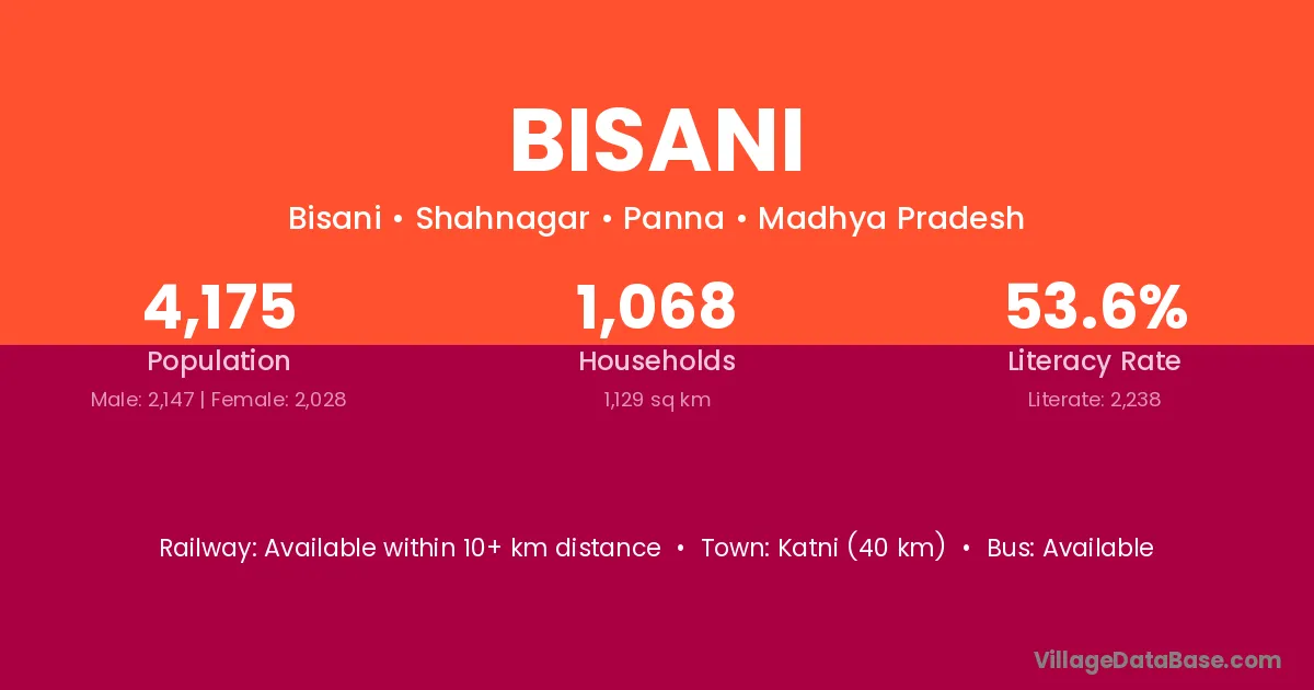 Kishanganj (18 km) is the nearest town to Bisani village for major economic activities and is located approximately 18 km away.