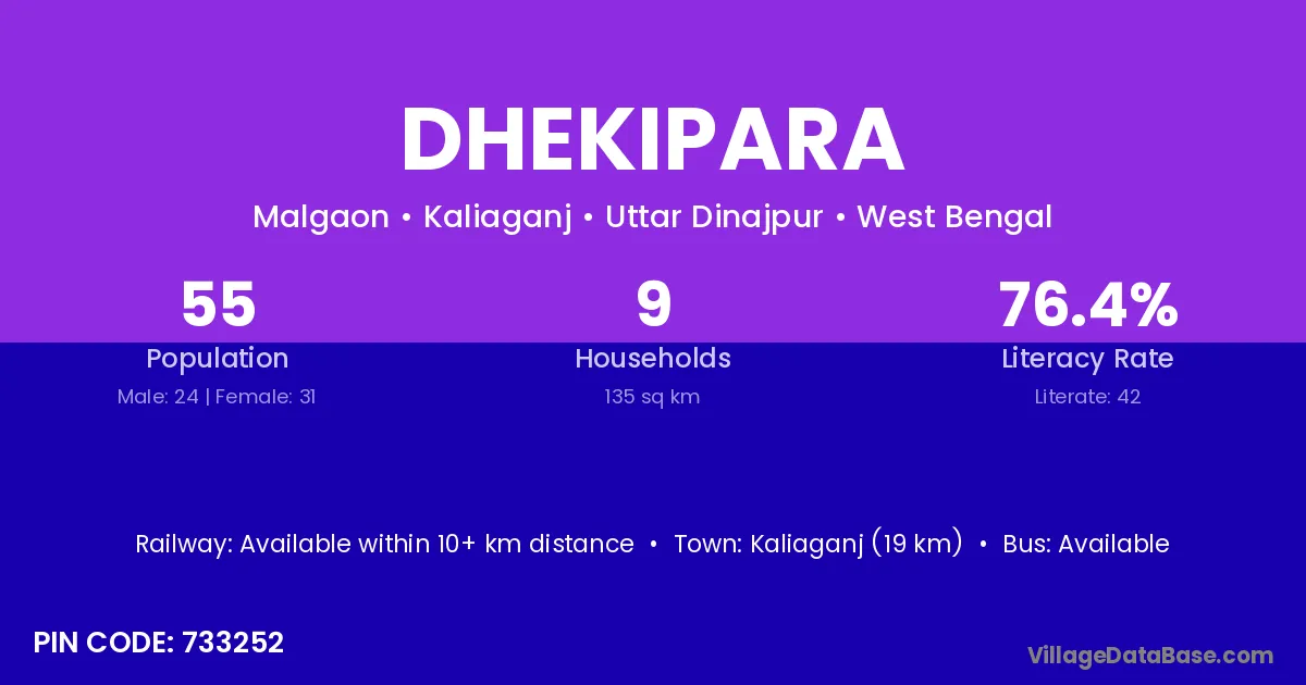 Kishanganj (35 km) is the nearest town to Dhekipara village for major economic activities and is located approximately 35 km away.