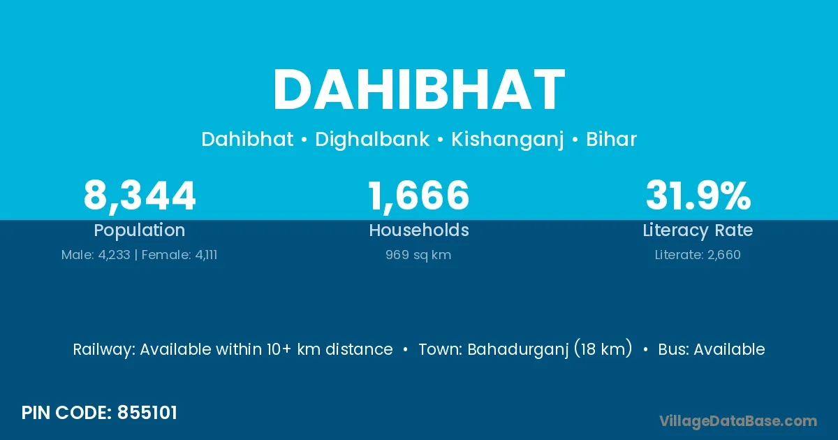 Bahadurganj (26 km) is the nearest town to Dahibhat village for major economic activities and is located approximately 26 km away.