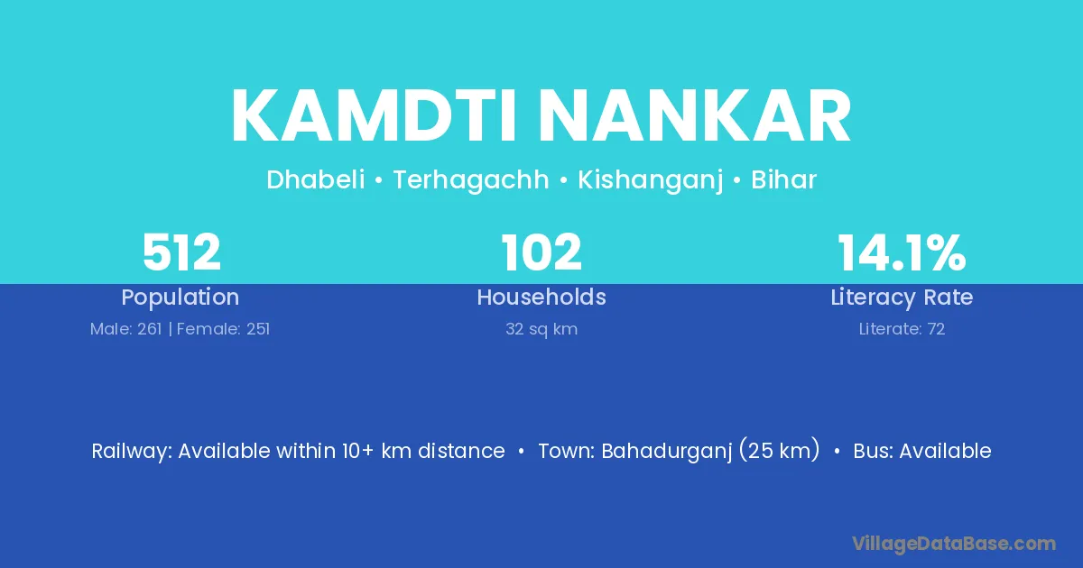 Bahadurganj (25 km) is the nearest town to Kamdti Nankar village for major economic activities and is located approximately 25 km away.