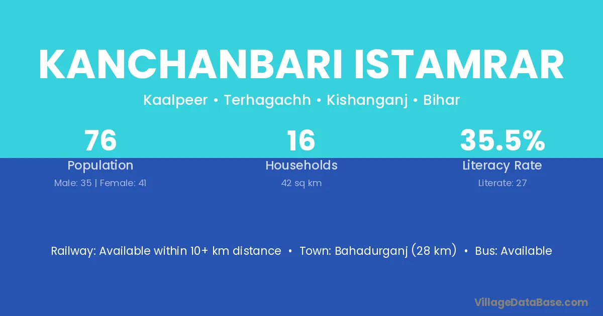Bahadurganj (28 km) is the nearest town to Kanchanbari Istamrar village for major economic activities and is located approximately 28 km away.