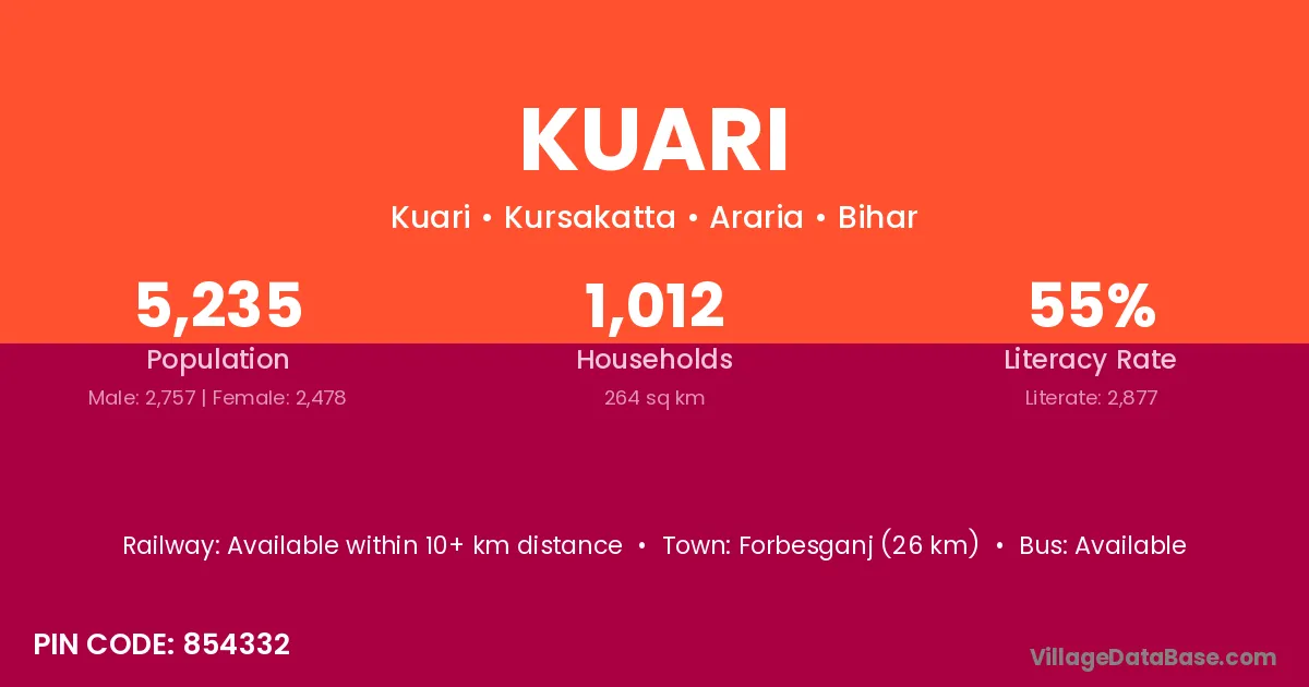 Bahadurganj (22 km) is the nearest town to Kuari village for major economic activities and is located approximately 22 km away.