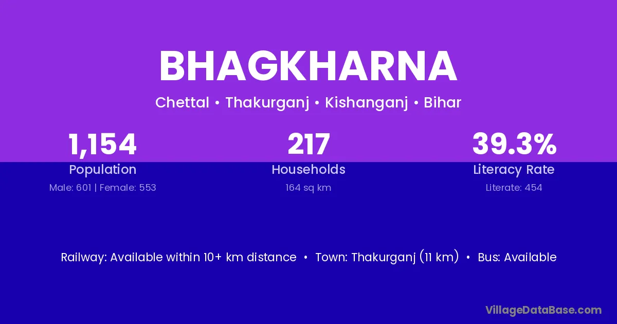 Thakurganj (11 km) is the nearest town to Bhagkharna village for major economic activities and is located approximately 11 km away.