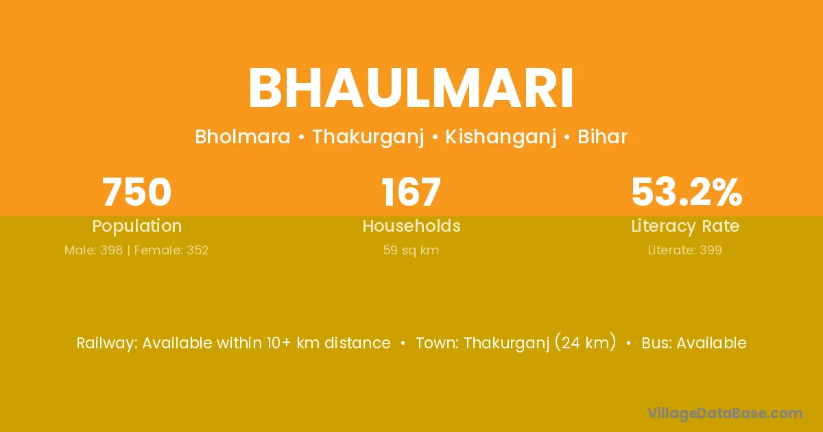 Thakurganj (24 km) is the nearest town to Bhaulmari village for major economic activities and is located approximately 24 km away.