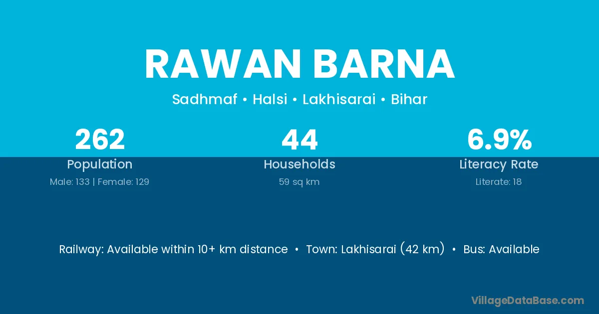 Lakhisarai (42 km) is the nearest town to Rawan Barna village for major economic activities and is located approximately 42 km away.