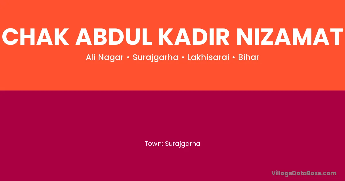 Chak Abdul Kadir Nizamat village is located in the Surajgarha Subdivision of the Lakhisarai district in Bihar .