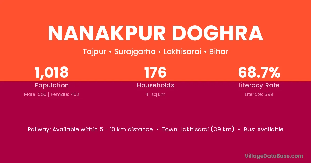 Lakhisarai (39 km) is the nearest town to Nanakpur Doghra village for major economic activities and is located approximately 39 km away.