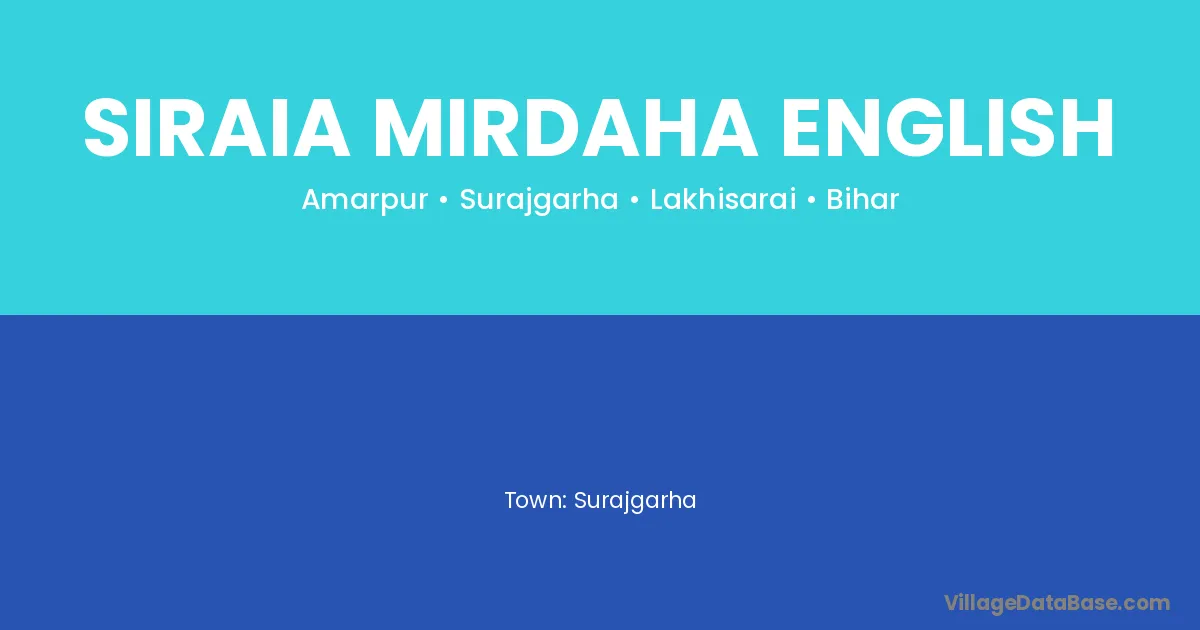Siraia Mirdaha English village is located in the Surajgarha Subdivision of the Lakhisarai district in Bihar .