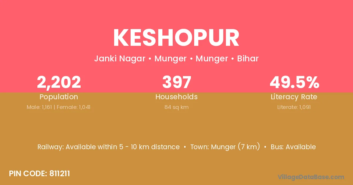 Murliganj (44 km) is the nearest town to Keshopur village for major economic activities and is located approximately 44 km away.