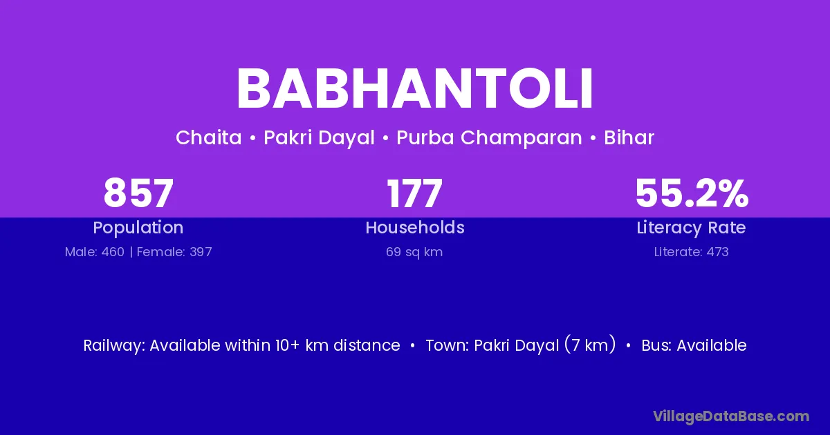 Madhepura (25 km) is the nearest town to Babhantoli village for major economic activities and is located approximately 25 km away.