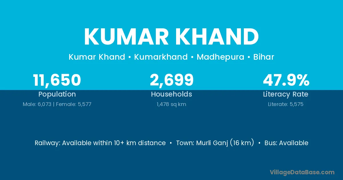 Murli Ganj (16 km) is the nearest town to Kumar Khand village for major economic activities and is located approximately 16 km away.