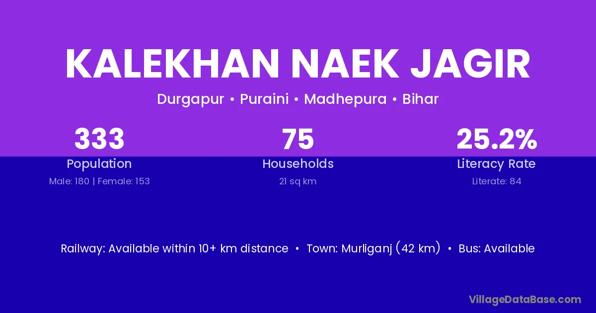 Murliganj (42 km) is the nearest town to Kalekhan Naek Jagir village for major economic activities and is located approximately 42 km away.