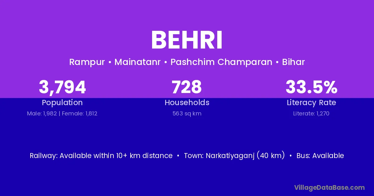 Madhepura (14 km) is the nearest town to Behri village for major economic activities and is located approximately 14 km away.