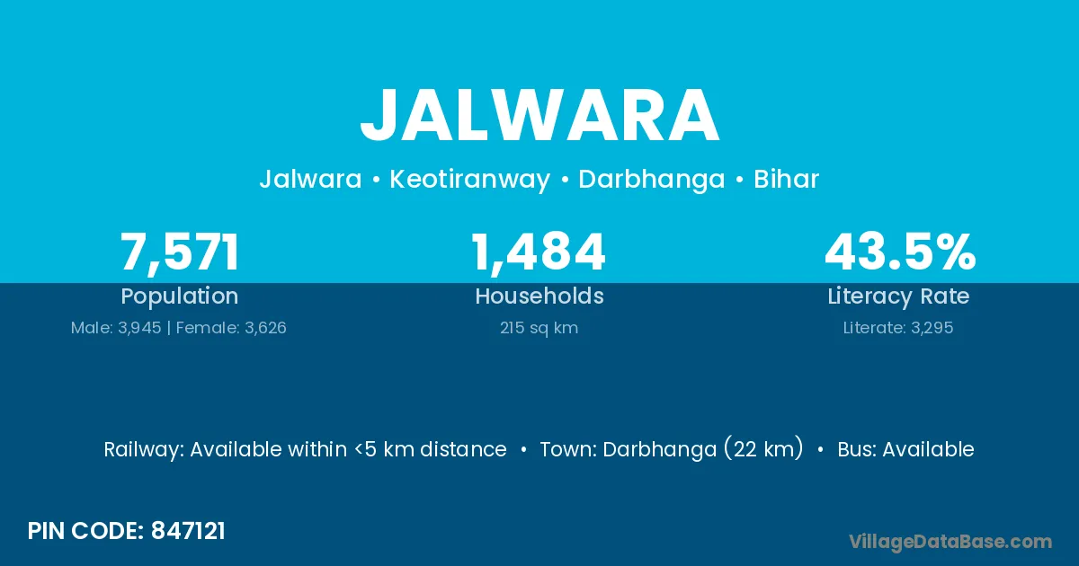 Madhepura (22 km) is the nearest town to Jalwara village for major economic activities and is located approximately 22 km away.