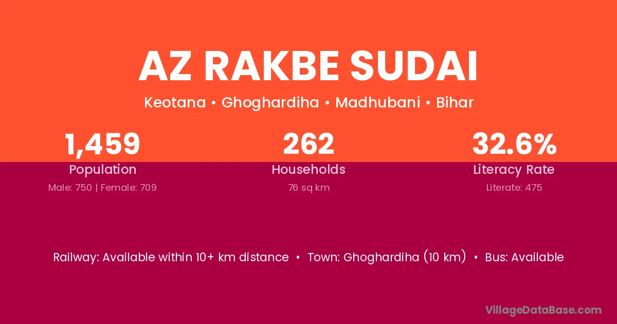 Az Rakbe Sudai village has a total population of 1,459 people, of which 750 are males and 709 are females.