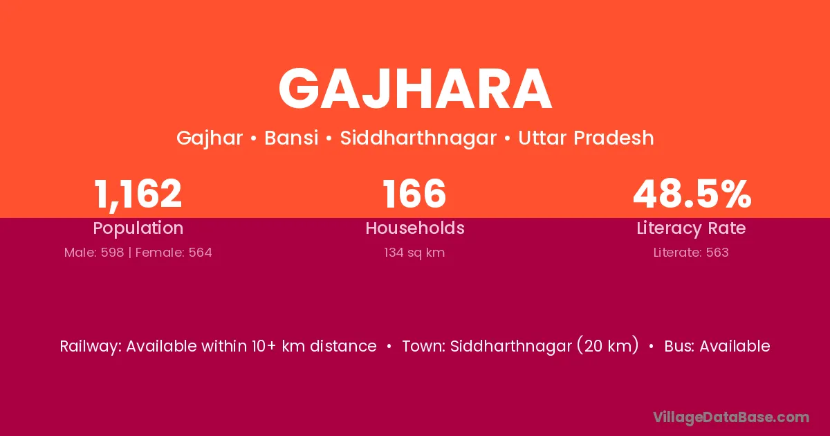 Gajhara village has a total population of 11,427 people, of which 5,916 are males and 5,511 are females.