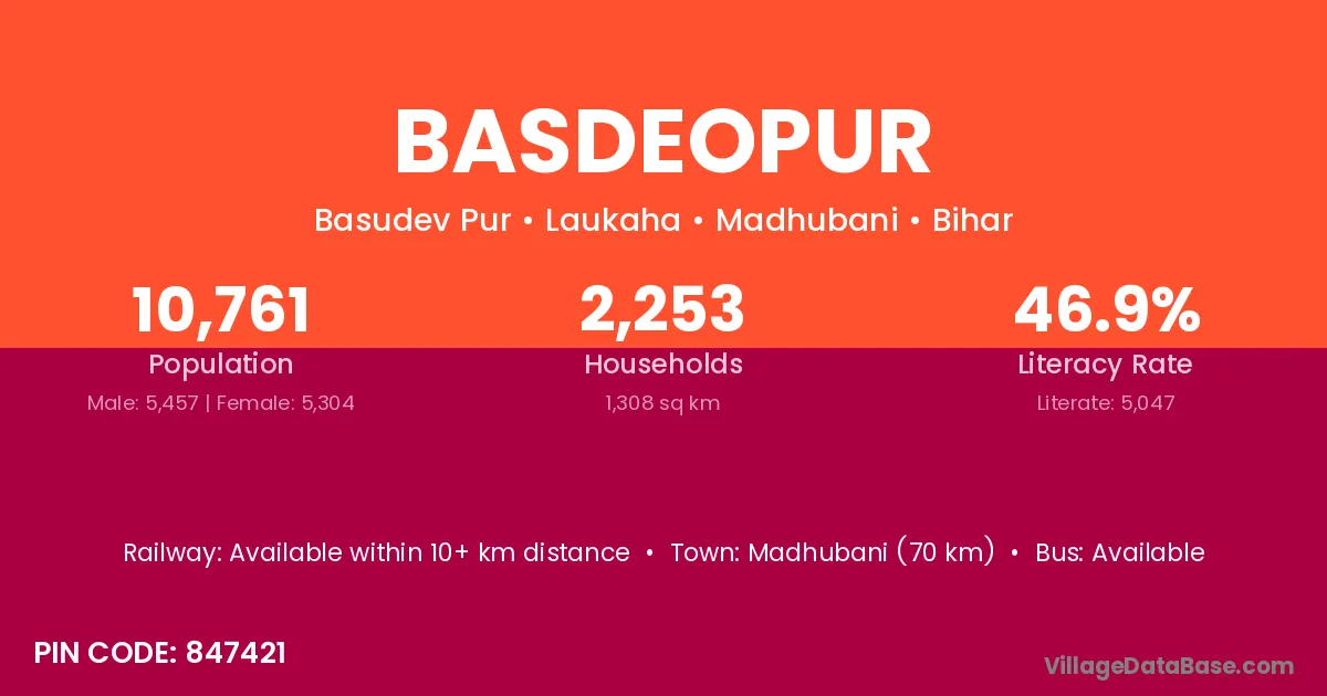 Madhubani (70 km) is the nearest town to Basdeopur village for major economic activities and is located approximately 70 km away.