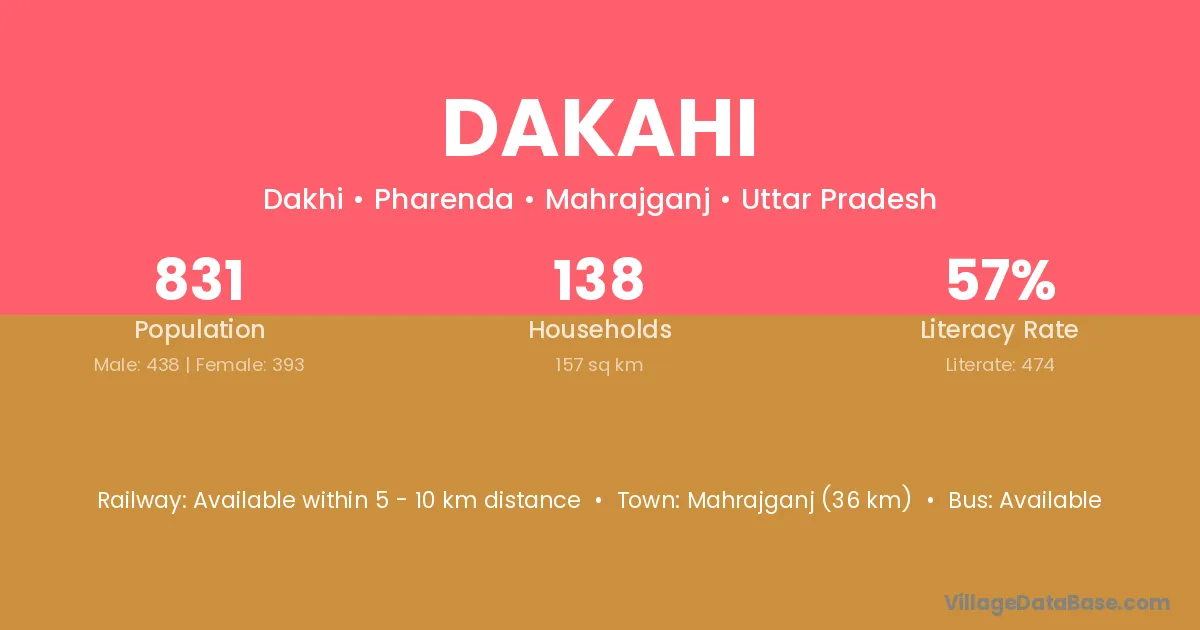 Ghoghardiha (30 km) is the nearest town to Dakahi village for major economic activities and is located approximately 30 km away.