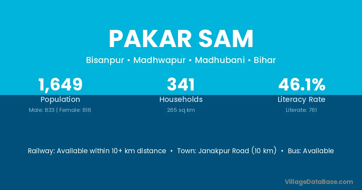 Janakpur Road (10 km) is the nearest town to Pakar Sam village for major economic activities and is located approximately 10 km away.