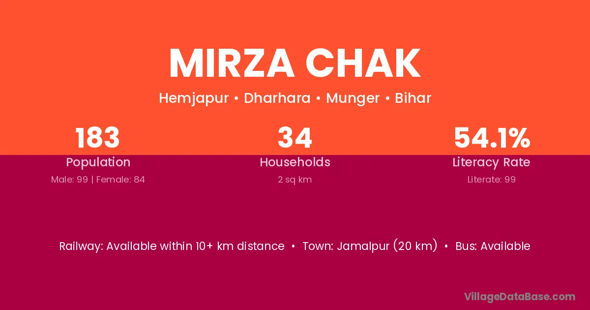 Mirza Chak village has a total population of 183 people, of which 99 are males and 84 are females.
