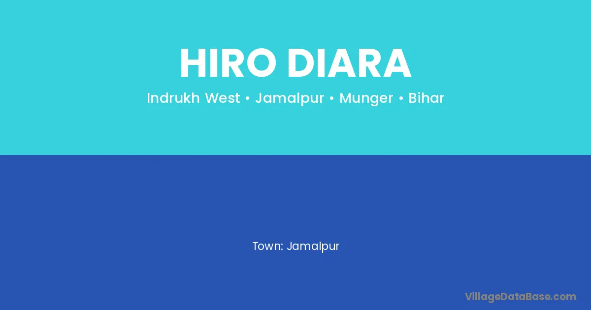 Hiro Diara village is located in the Jamalpur Subdivision of the Munger district in Bihar .
