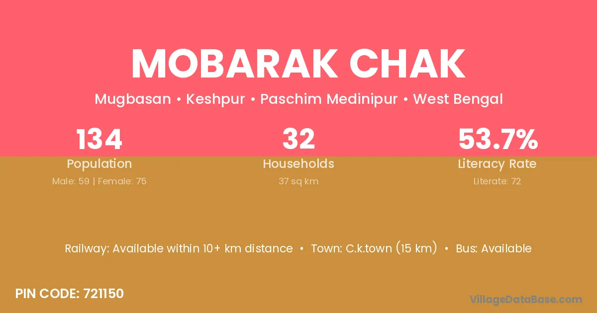 Jamalpur (3 km) is the nearest town to Mobarak Chak village for major economic activities and is located approximately 3 km away.