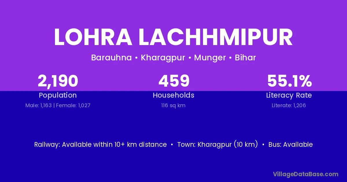 Kharagpur (10 km) is the nearest town to Lohra Lachhmipur village for major economic activities and is located approximately 10 km away.