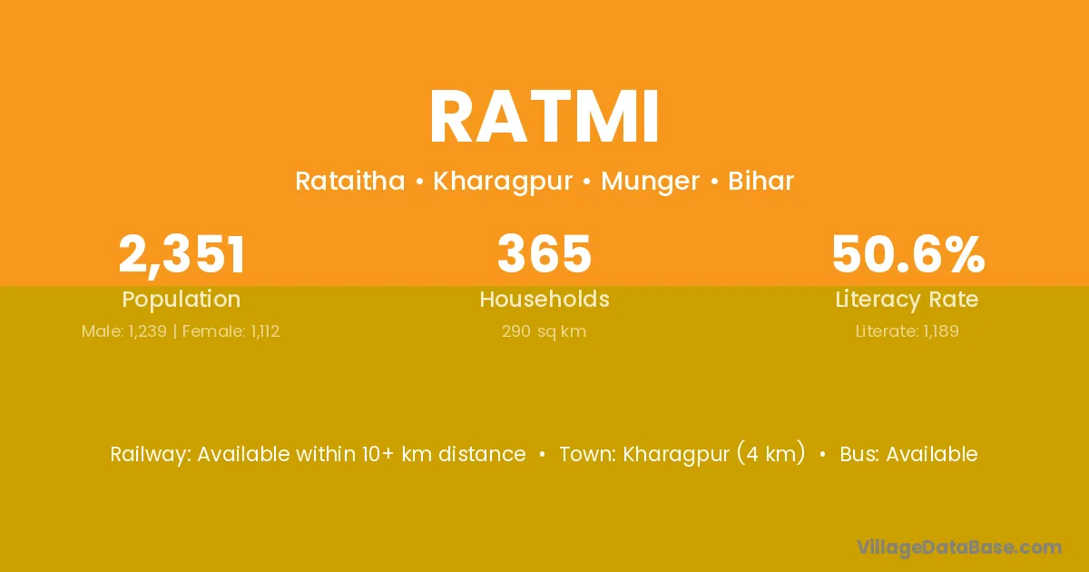 Kharagpur (4 km) is the nearest town to Ratmi village for major economic activities and is located approximately 4 km away.