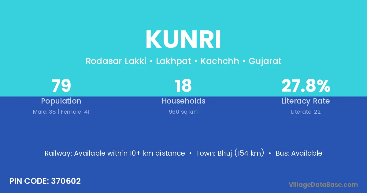 Kunri village has a total population of 967 people, of which 521 are males and 446 are females.
