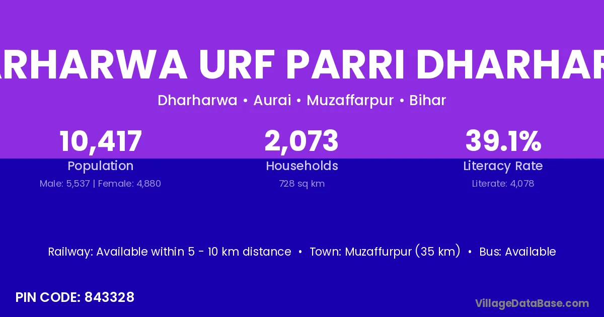 Dharharwa Urf Parri Dharharwa village has a total population of 10,417 people, of which 5,537 are males and 4,880 are females.