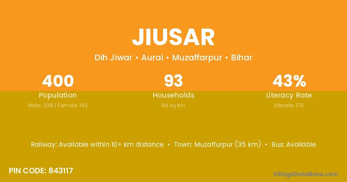 Muzaffurpur (35 km) is the nearest town to Jiusar village for major economic activities and is located approximately 35 km away.