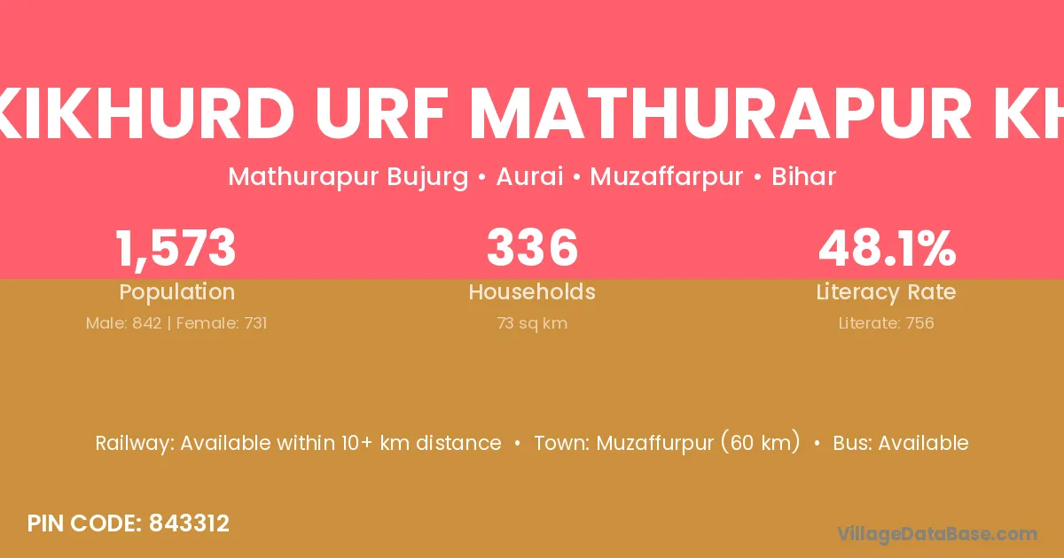 Jonkikhurd Urf Mathurapur Khurd village is located in the Aurai Subdivision of the Muzaffarpur district in Bihar .