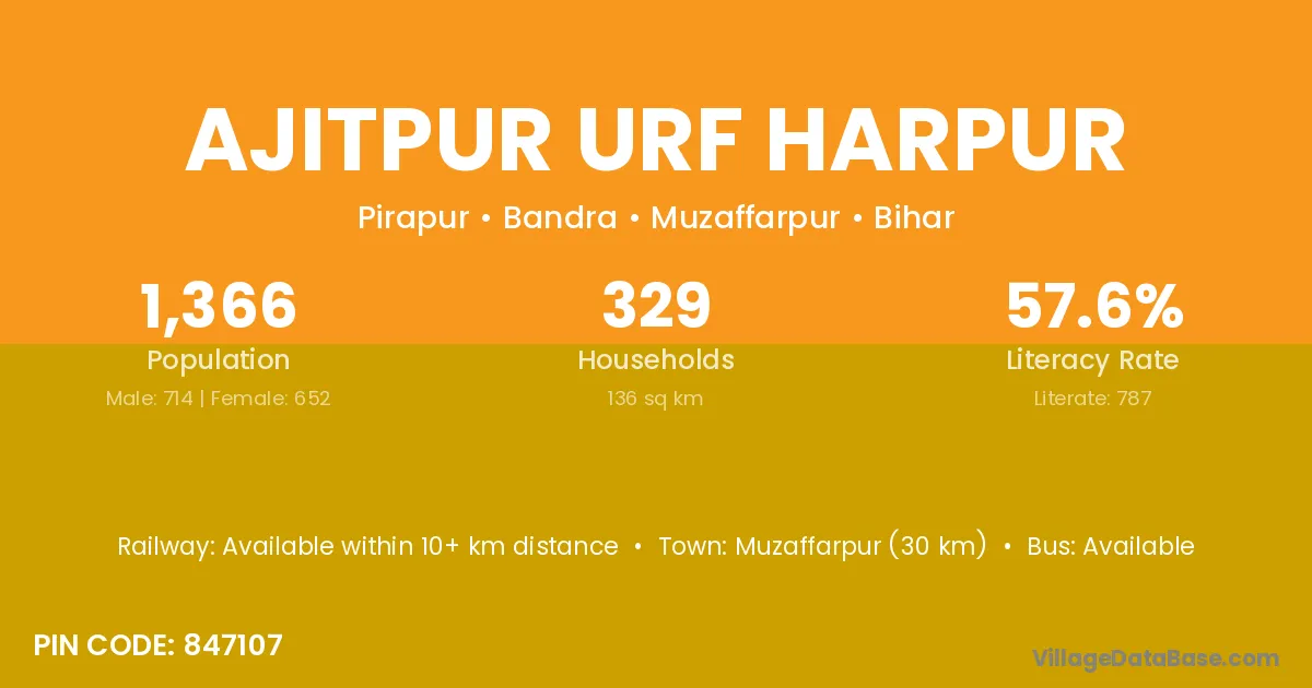 Ajitpur Urf Harpur village has a total population of 1,366 people, of which 714 are males and 652 are females.