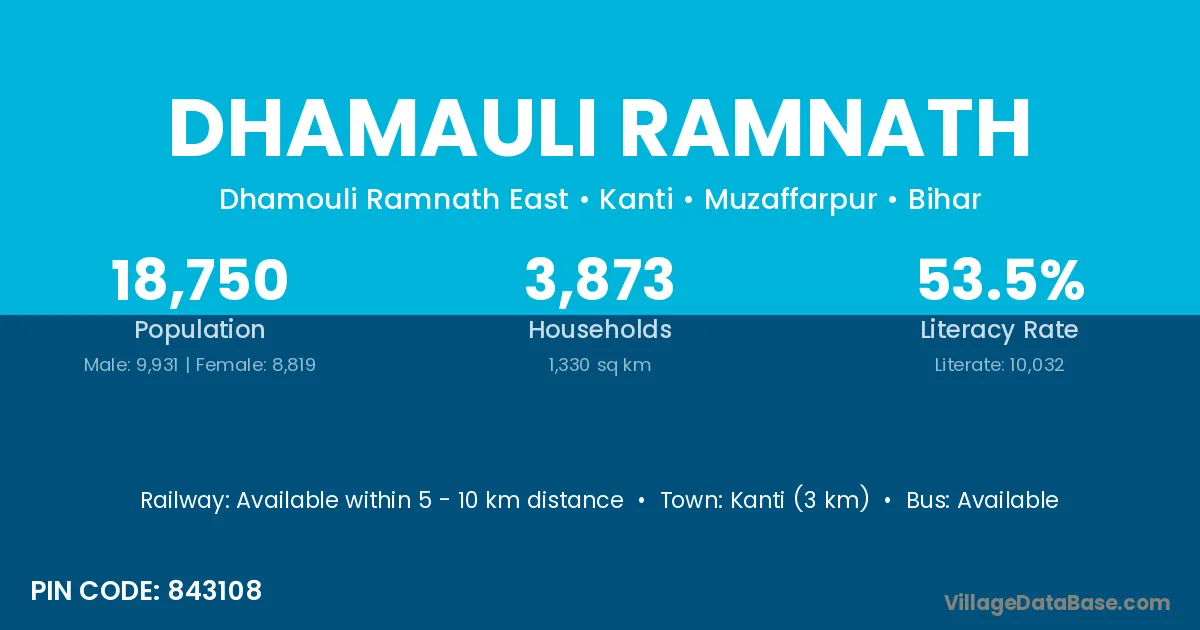 Kanti (3 km) is the nearest town to Dhamauli Ramnath village for major economic activities and is located approximately 3 km away.