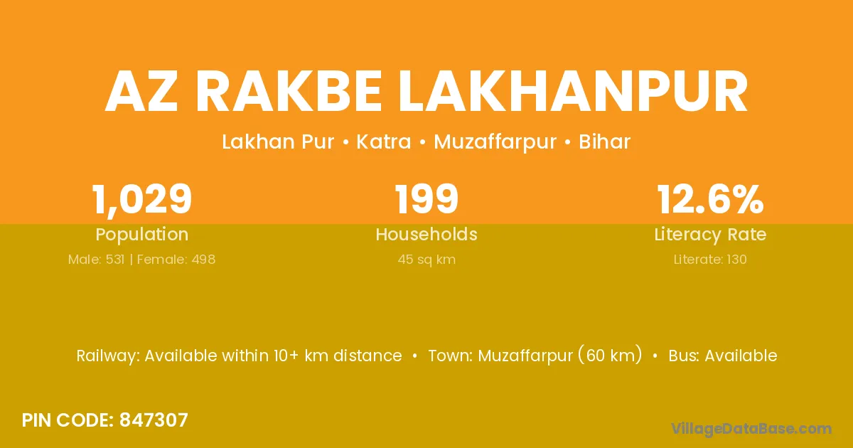 Muzaffarpur (60 km) is the nearest town to Az Rakbe Lakhanpur village for major economic activities and is located approximately 60 km away.