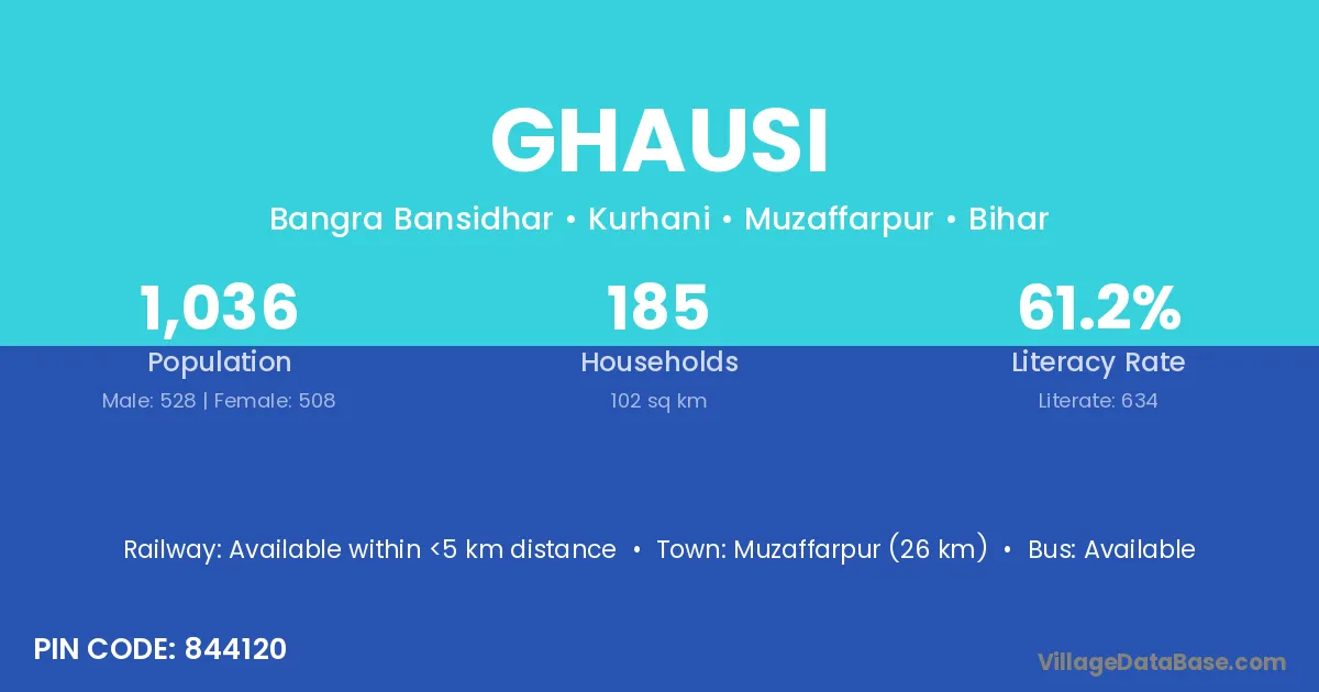 Muzaffarpur (26 km) is the nearest town to Ghausi village for major economic activities and is located approximately 26 km away.