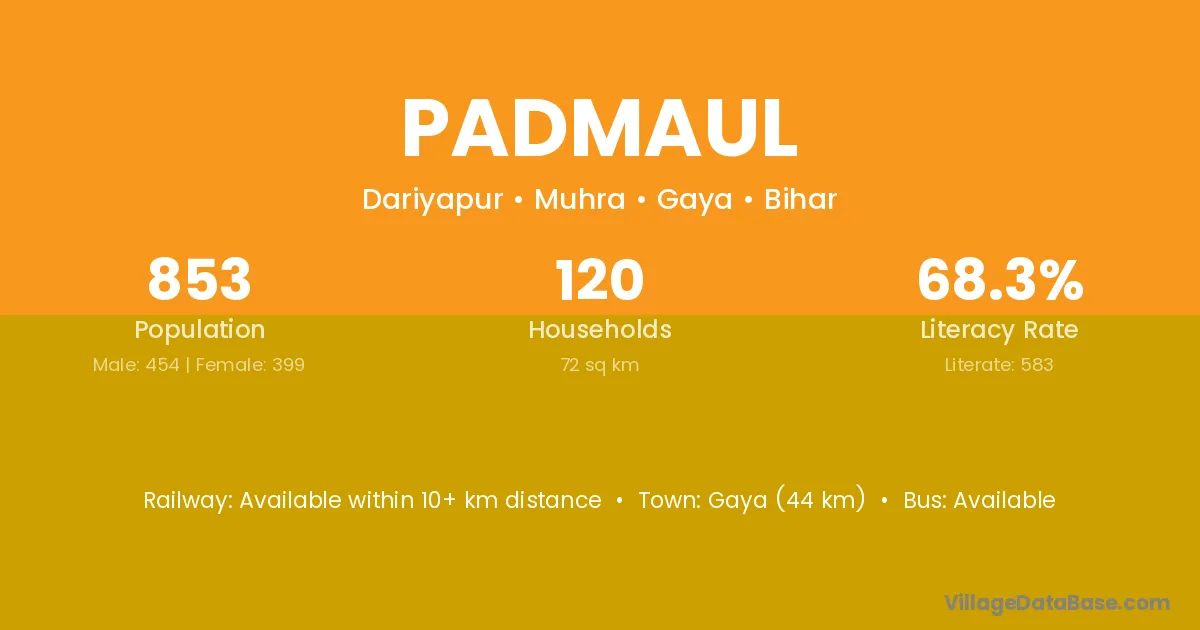 Muzaffarpur (29 km) is the nearest town to Padmaul village for major economic activities and is located approximately 29 km away.