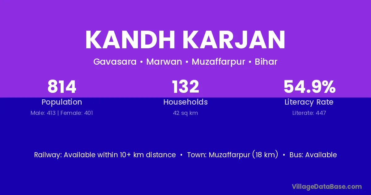Muzaffarpur (18 km) is the nearest town to Kandh Karjan village for major economic activities and is located approximately 18 km away.