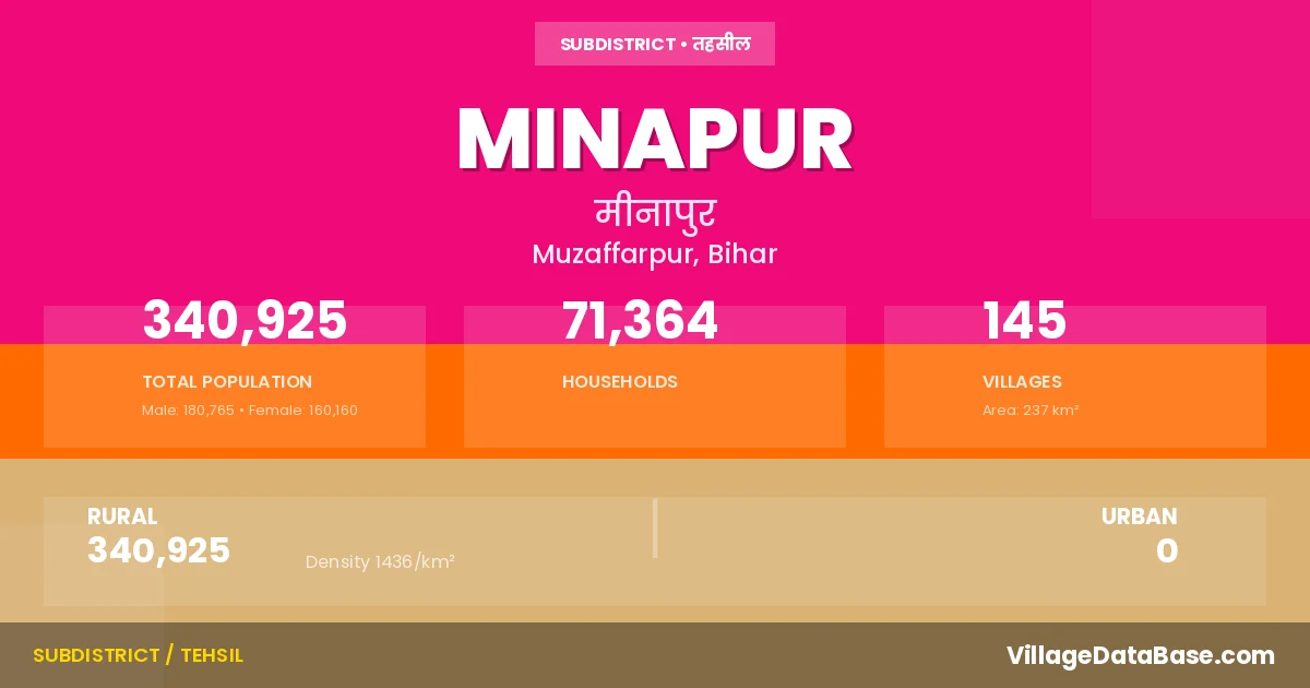 Minapur Subdivision comprises about 145 villages. Below is a list of these villages along with information about their respective gram panchayats and the nearest town: