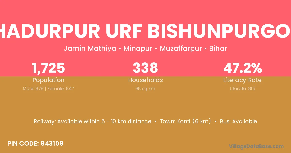 There are approximately 338 households in Bahadurpur Urf Bishunpurgopal village.