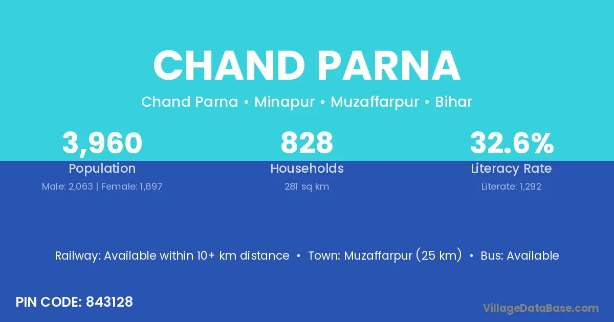 Muzaffarpur (25 km) is the nearest town to Chand Parna village for major economic activities and is located approximately 25 km away.
