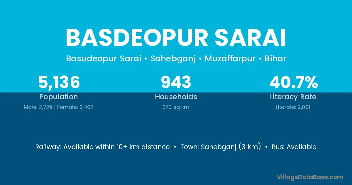 Sahebganj (3 km) is the nearest town to Basdeopur Sarai village for major economic activities and is located approximately 3 km away.