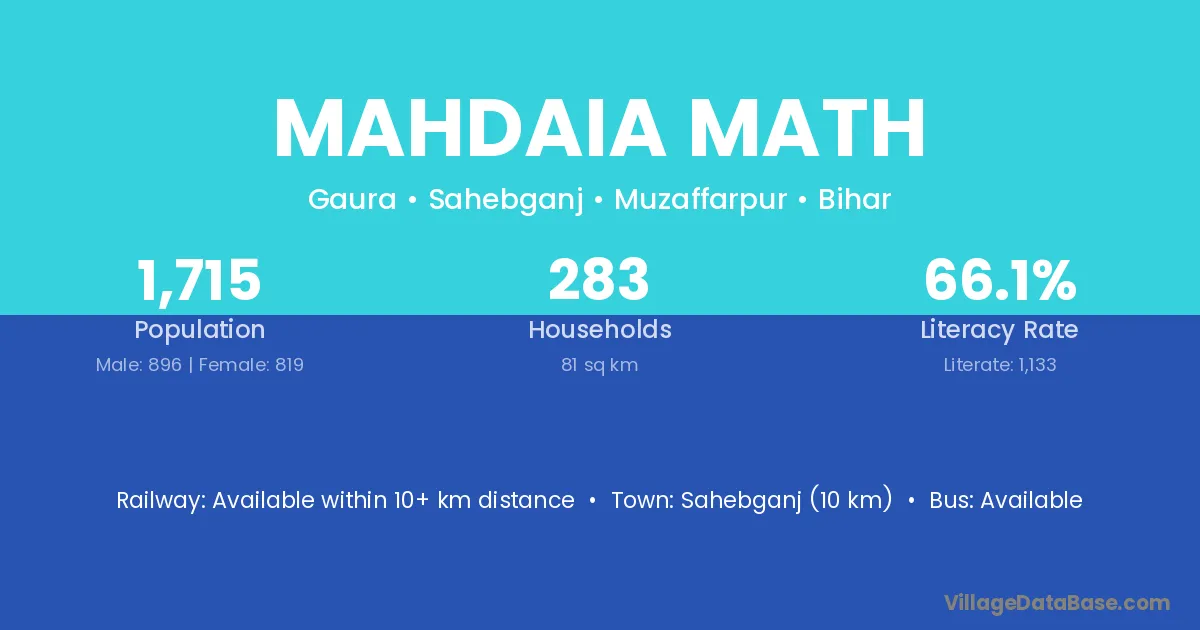 Sahebganj (10 km) is the nearest town to Mahdaia Math village for major economic activities and is located approximately 10 km away.