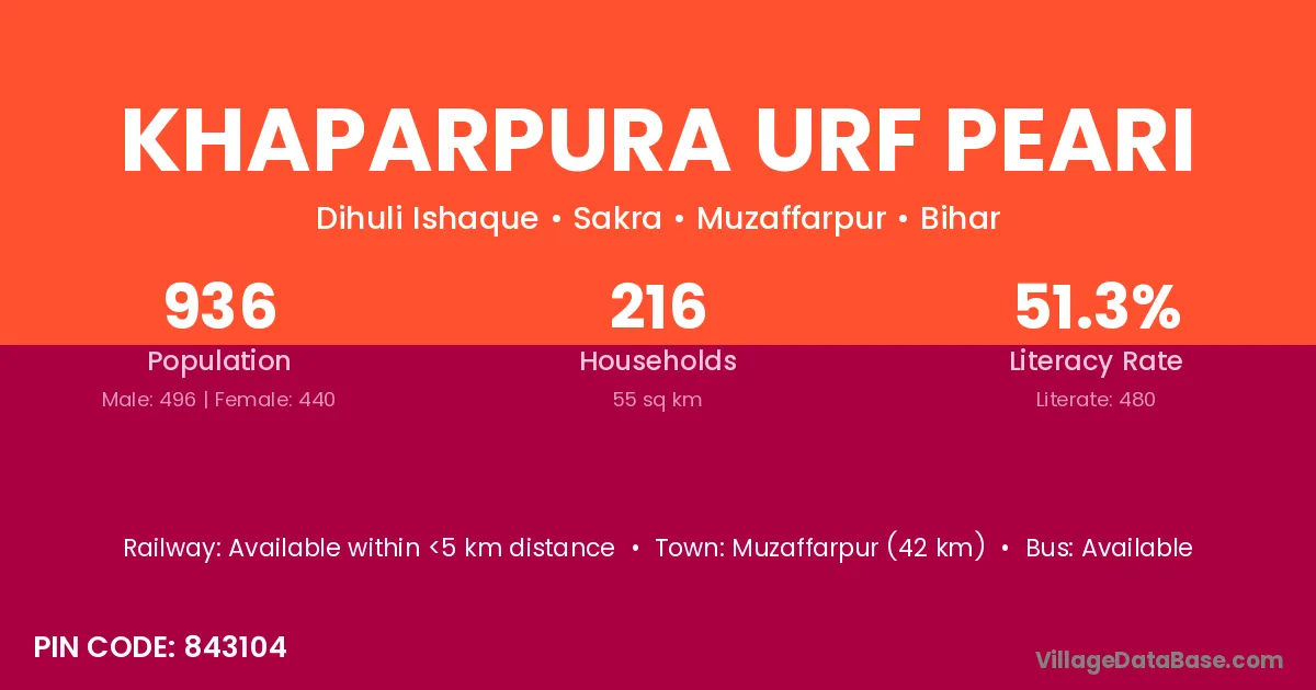 Khaparpura Urf Peari village has a total population of 936 people, of which 496 are males and 440 are females.