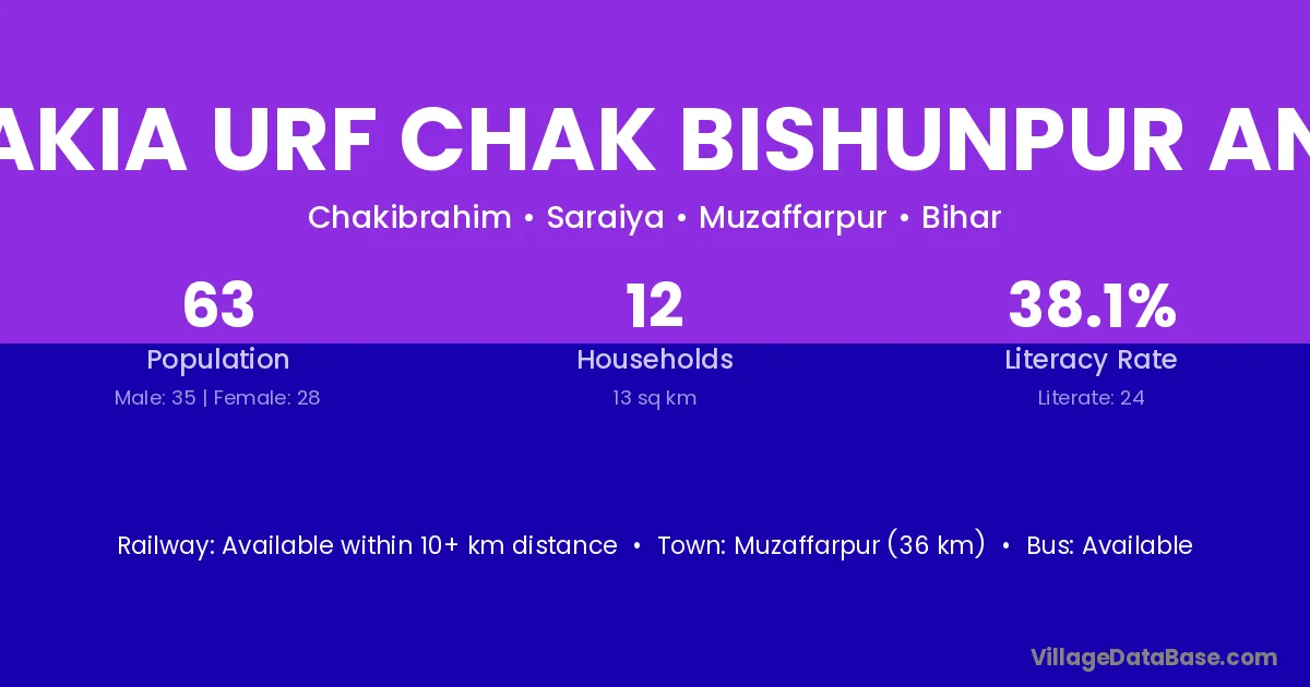 Chakia Urf Chak Bishunpur Anan village has a total population of 63 people, of which 35 are males and 28 are females.