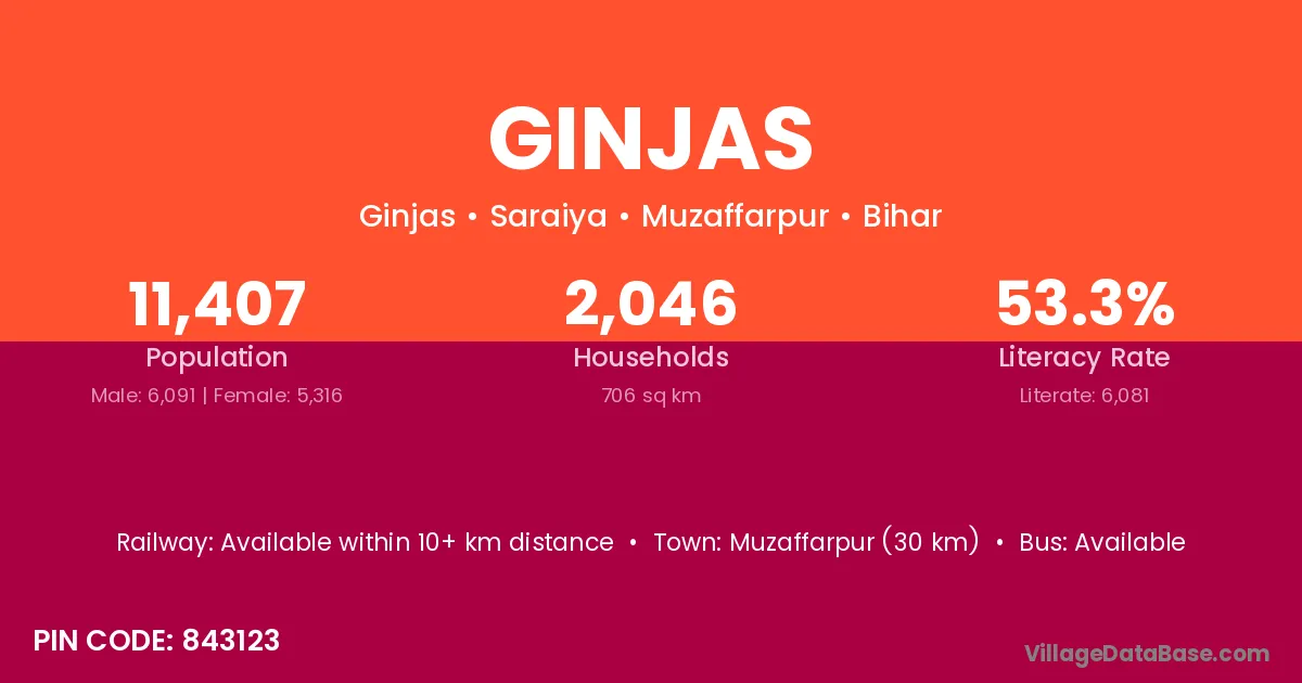 Muzaffarpur (30 km) is the nearest town to Ginjas village for major economic activities and is located approximately 30 km away.
